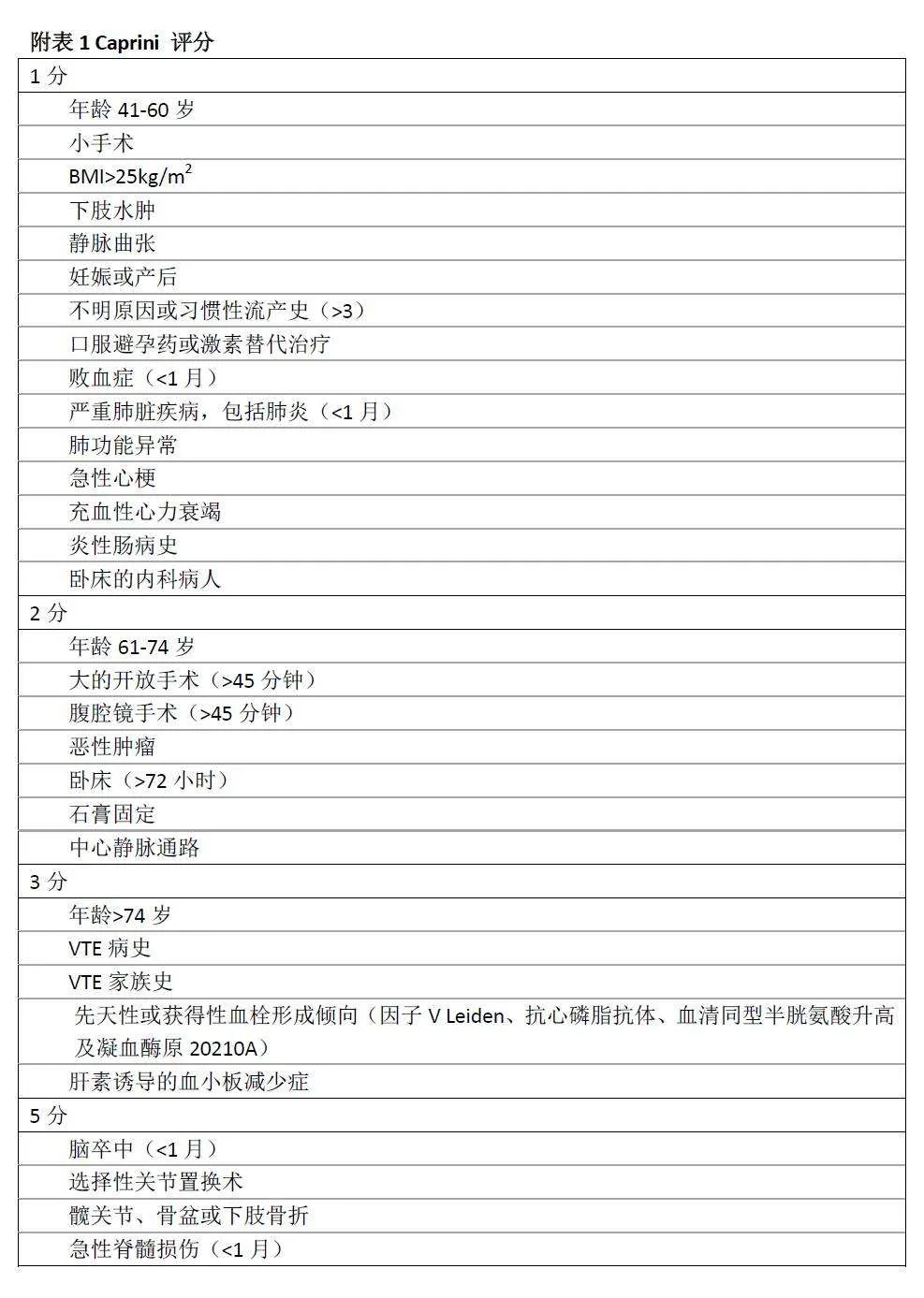 目前常用Caprini评估表,具体如下: